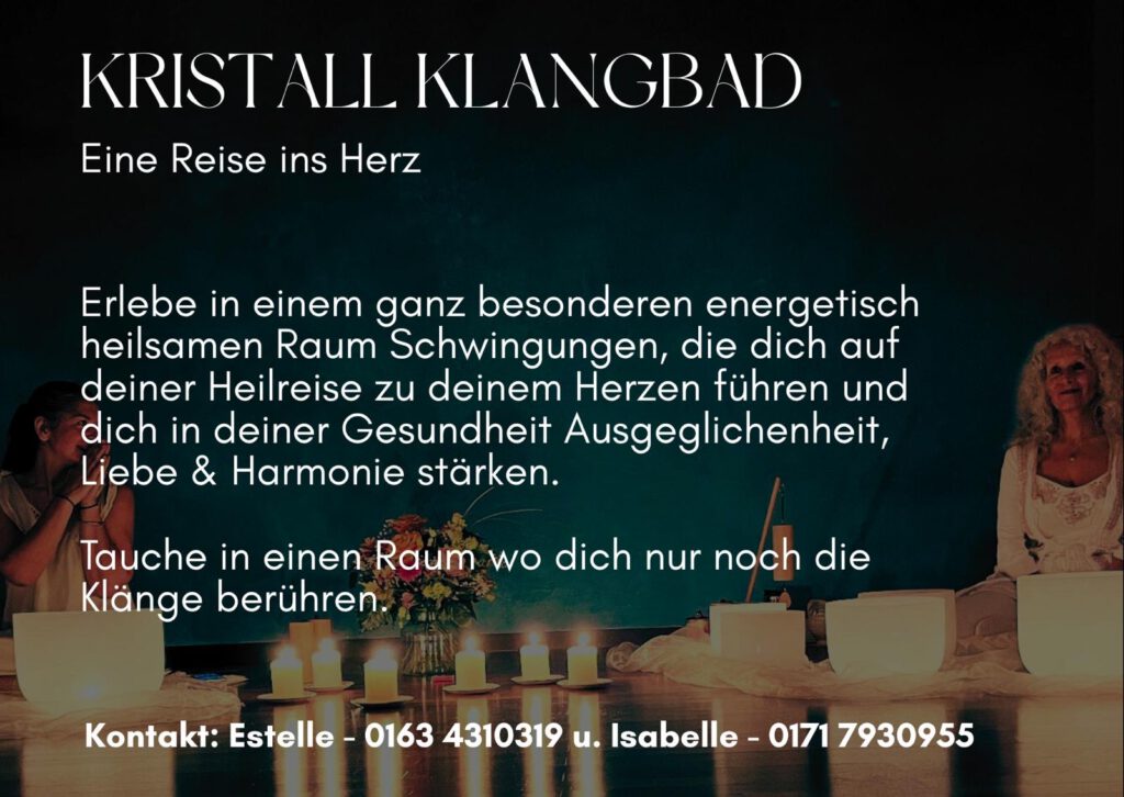 Erlebe in einem ganz besonderen, energetisch heilsamen Raum Schwingungen, die dich auf deiner Heilreise zu deinem Herzen geleiten und dich in deiner Gesundheit, Ausgeglichenheit, Liebe und Harmonie stärken.